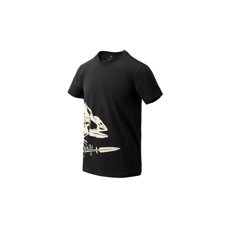 Klasické bavlnené tričko so štandardným strihom a potlačou Full Body Skeleton, ktorá zobrazuje po boku kostru chameleóna s kopijou, čo je logo spoločnosti Helikon-Tex.