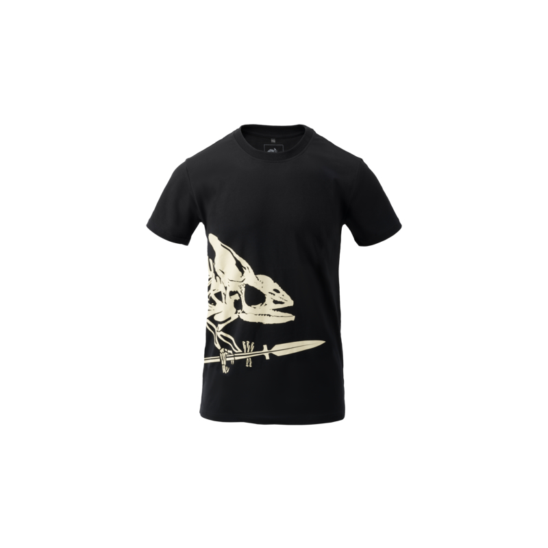 Klasické bavlnené tričko so štandardným strihom a potlačou Full Body Skeleton, ktorá zobrazuje po boku kostru chameleóna s kopijou, čo je logo spoločnosti Helikon-Tex.