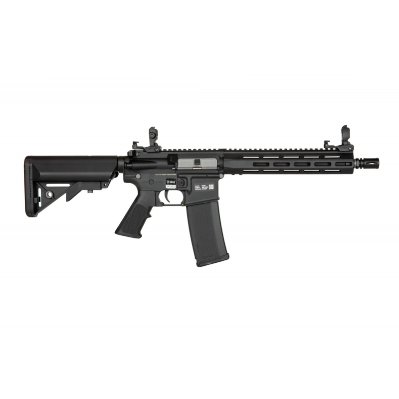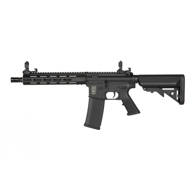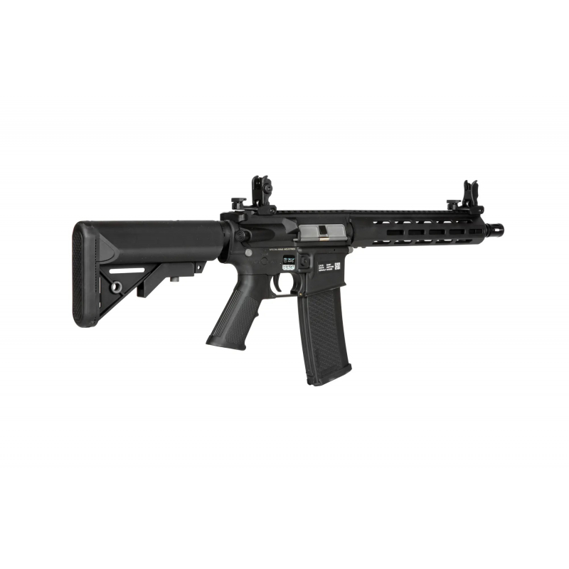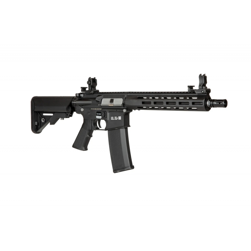 Obsahuje AEG airsoftovú pušku M4 Carbine M-LOK (SA-F03 FLEX™) od Specna Arms (čierna) s ľahkým telom a vylepšenými vnútornými dielmi.