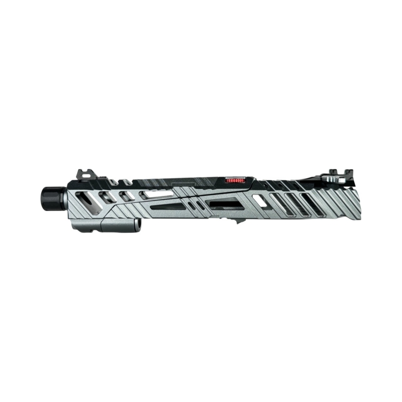 Záver je vyrobený z vysoko odolného hliníka 6061 presným CNC obrábaním a má dizajn split-slide (pohybuje sa len časť záveru) s úpravou pre fixnú vonkajšiu hlaveň (non-recoil).